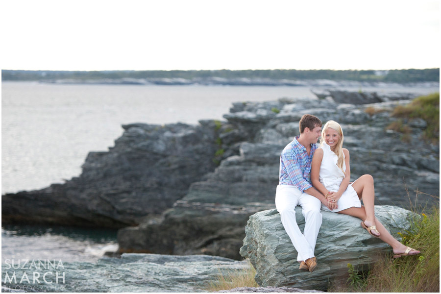 Ashley & Tom spend their summers in Newport, so, only natural we head down that way for their engagement session. I had so much fun photographing these two. They both have a sense of humor that is right up my alley and killer style. Which is the perfect storm for a Suzanna March Photography couple! Our original second location fell through, but Tom totally saved the day with this beautiful spot on the rocks, just in time for sunset!